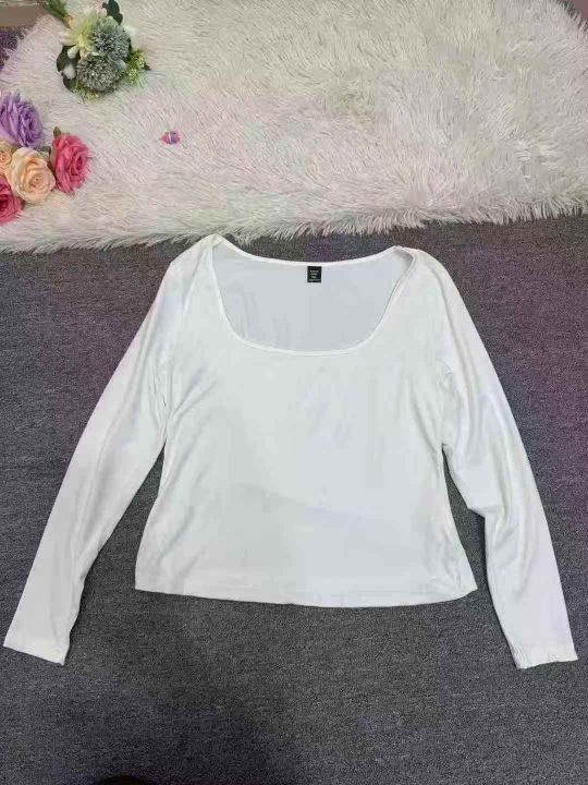 5851件,女早秋季纯色百搭U领长袖T恤上衣女弹力修身高腰显瘦打底衫,一包3件3个色包装,码数XL-4XL,全清3.8元,分货➕1。 货号:1303