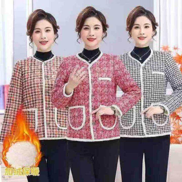 上身棉袄外套[太阳]全清19.8,380件、码数2XL-5XL。 中老年妈妈装秋冬洋气小香风加厚保暖外套中年女加绒经典时尚短款棉服格子棉衣,不轻薄,厚实有份量,高品质,非常适合摆摊、做早市/夜市摆地摊、这个价格拿棉衣真的很划算[强]独立包装、100/200件起多款混配19.5