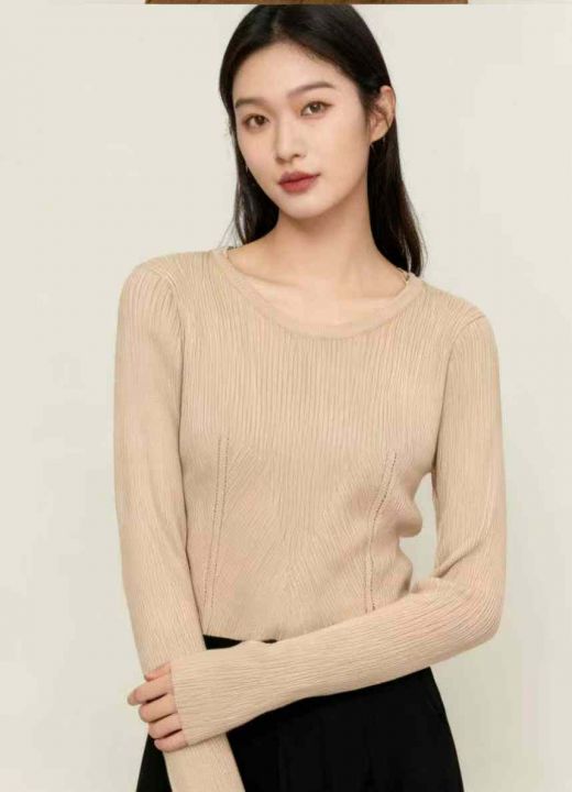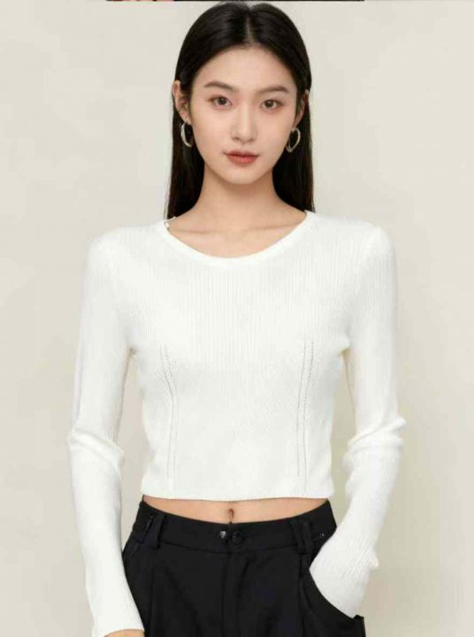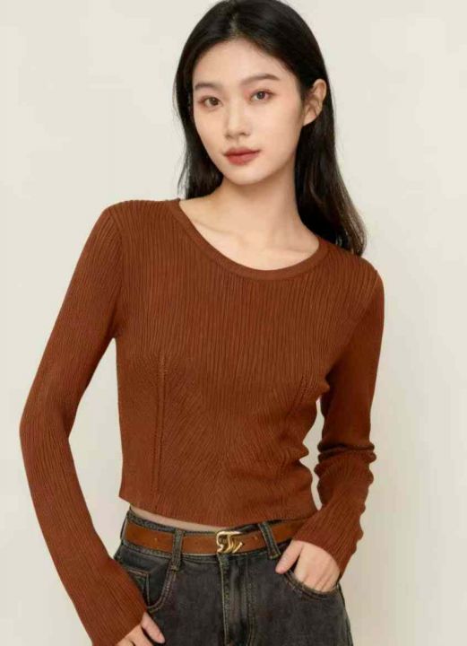 秋季新品别致辣妹短款圆领包芯纱针织套头毛衣,独立包...