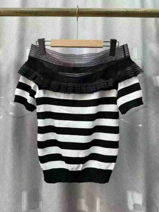 夏季新品时尚一字领套头短袖针织衫性感露肩休闲女装气质优雅。独立包装,34 -40码,390件左右,全清4.8块分货加一