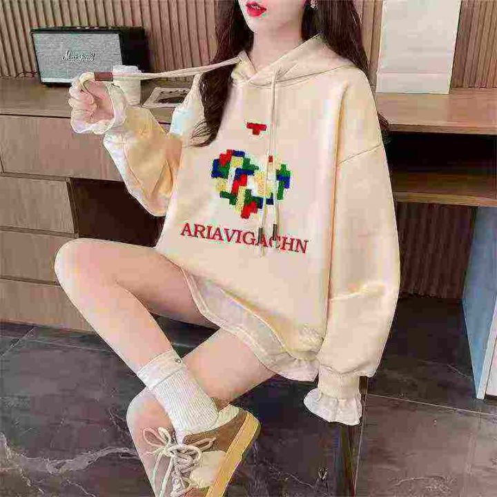 设计感大版慵懒风时尚休闲加绒假两件连帽卫衣,后领包边,加绒,版型足,重工刺绣,独立包装,码数1-3码,数量340件,分货加1,货号1029#64