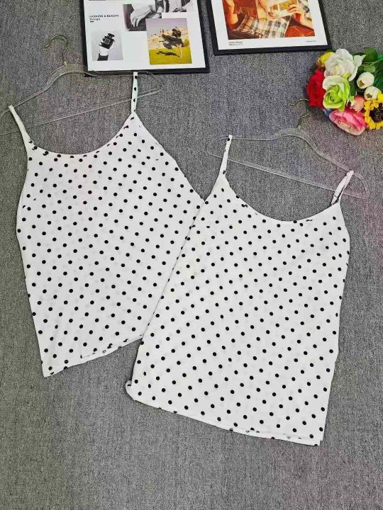 电商仓回收240件夏季气质靓妹波点背心,码数s-l。宽松版型,肩带可以调节,面料柔软有垂感,全部独立包装。