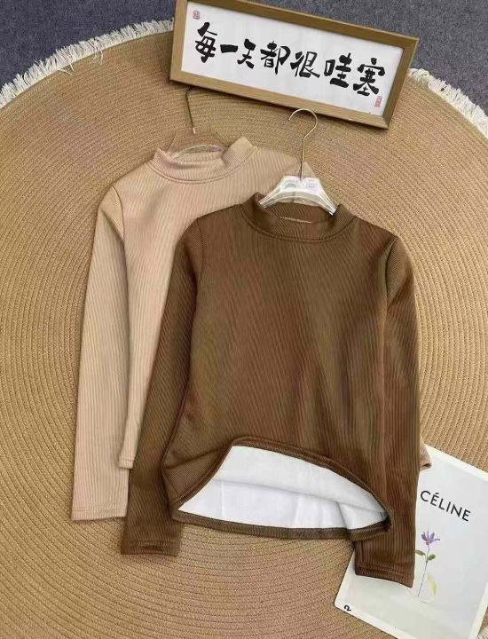 圆领/半高领德绒打底衫女新款内搭宽松白色印花中长款长袖T恤,2种款式,圆...