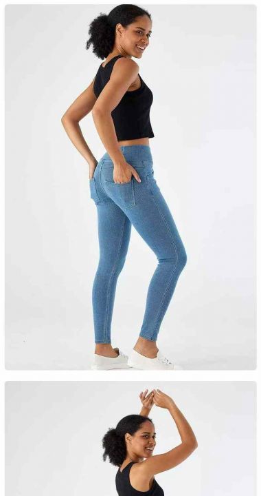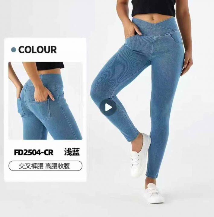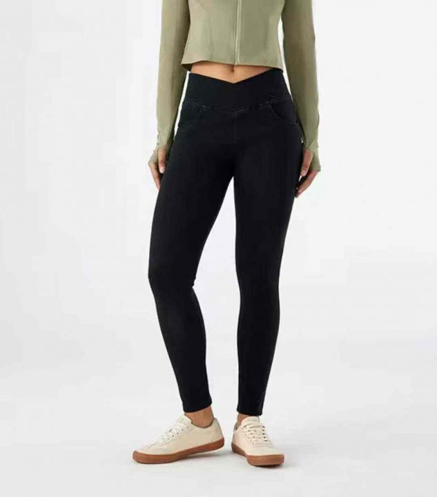 秋冬新款高腰交叉高弹力修身显瘦提臀双口袋健身瑜伽牛仔裤,独立包装,码数S--L码,240件,全清8.8元超低价秒杀!分货加一!