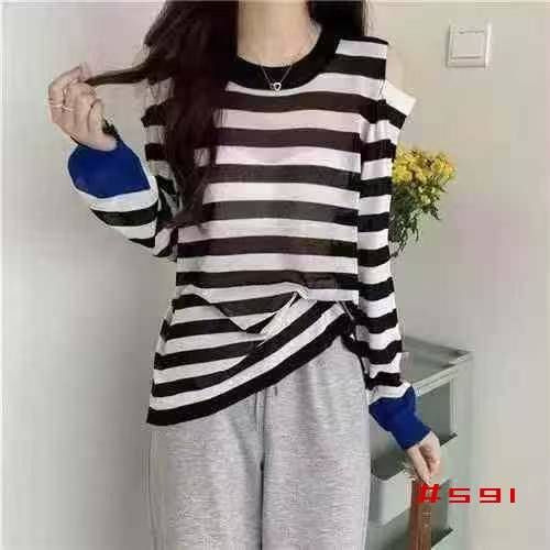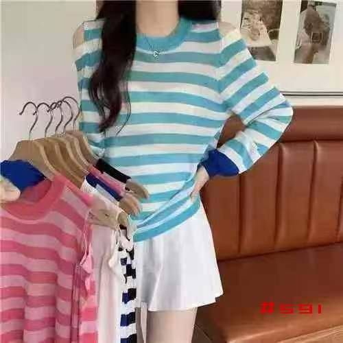 小心机露肩减龄甜美宽松条纹针织衫,数量500件左右,单款多色,均码,独立包装,分货➕1随机配@_@