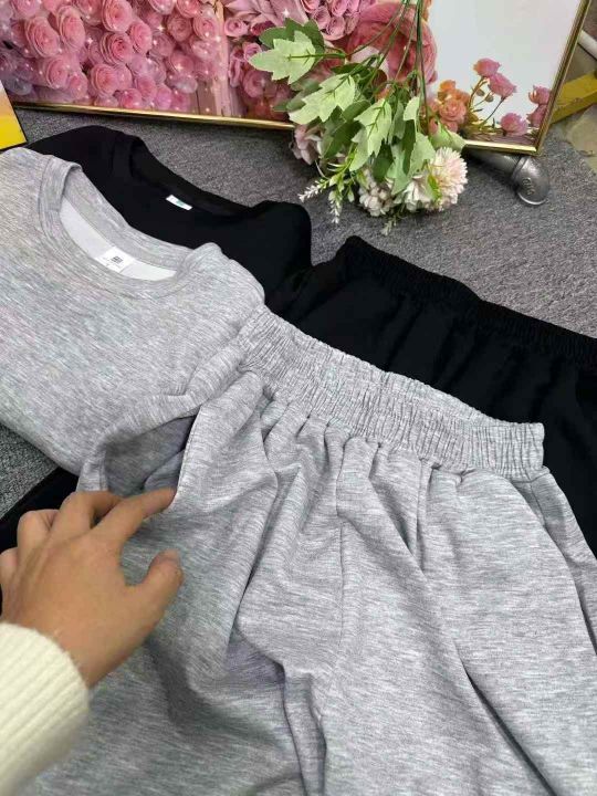 时尚阔腿休闲套装新款设计感洋气减龄显瘦短袖阔腿裤两件套,整款2色,灰色为主,独立包装,货品干净,后领包边,1到4码,3400套左右,12.8清,分货加1。 货号:1303
