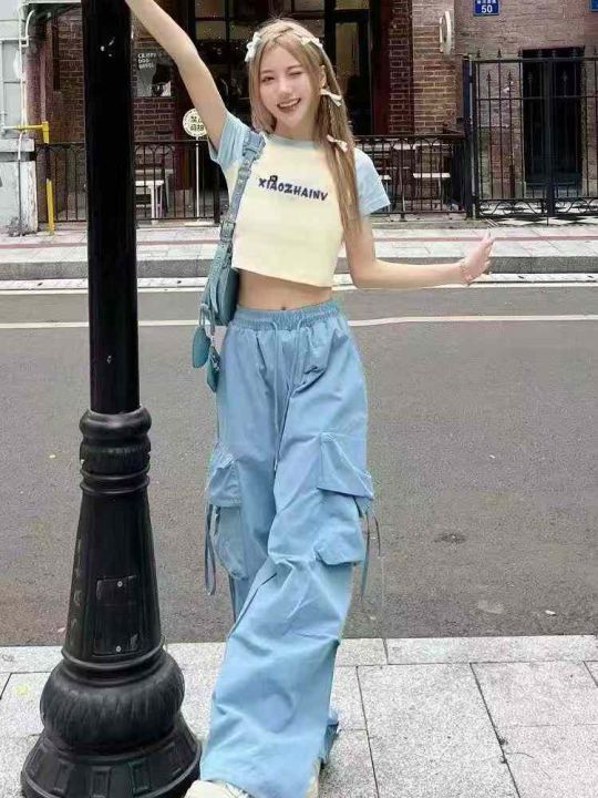 美式工装裤女春秋季新款高腰宽松显瘦百搭阔腿休闲裤,...