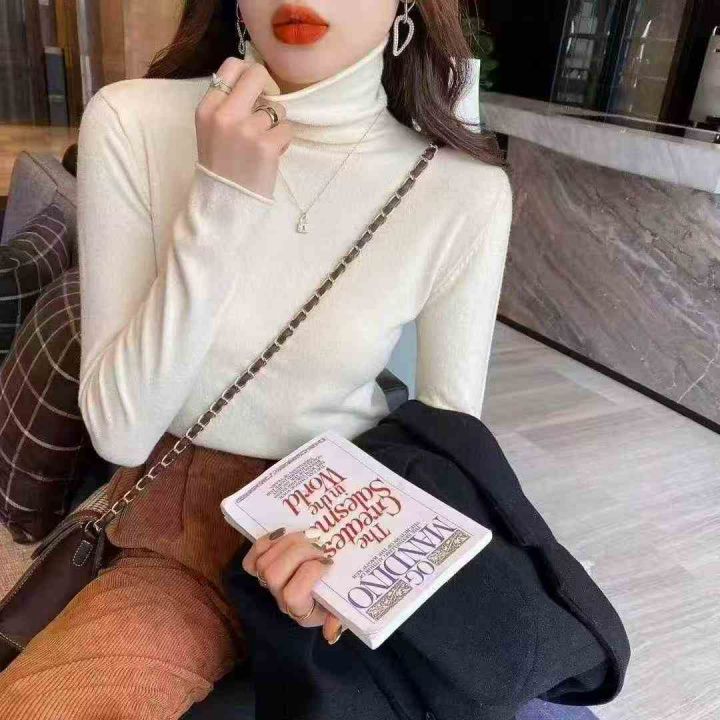 秋冬新款净版简约宽松高领打底外穿包芯纱套头毛衣,独...