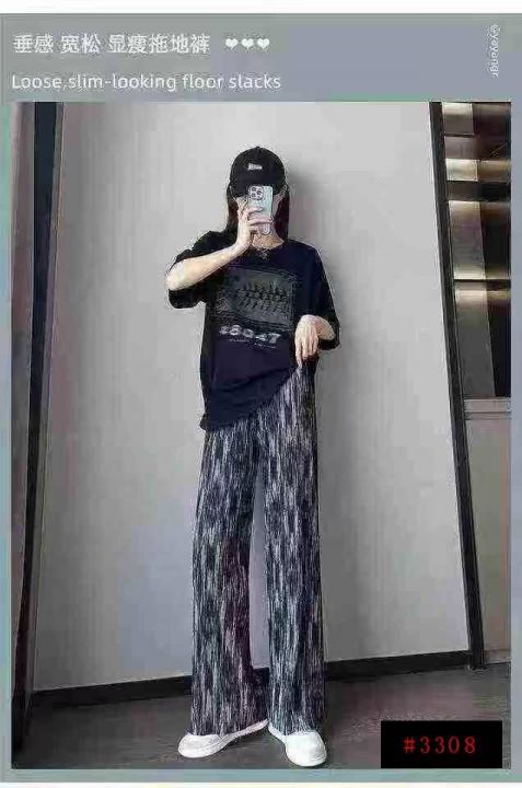 冰凉感直筒冰丝阔腿裤女夏季薄款休闲防蚊显瘦垂感扎染裤子,独立包装,码数M-2XL,数量496条,M码裤长90厘米,货号0915#54@_@