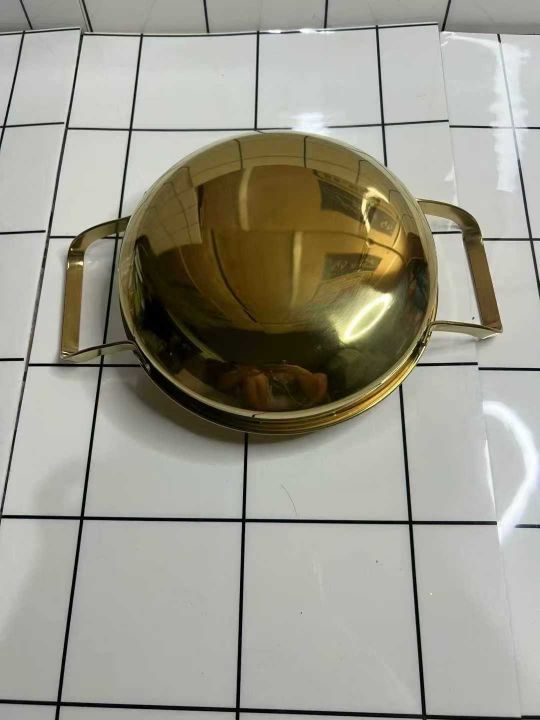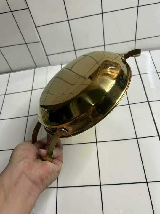 韩式不锈钢干锅海鲜锅,金色平底浅锅菜盘商用双耳锅电磁炉 ,高端货[庆祝]懂货的速度[烟花][烟花][烟花][烟花][烟花][烟花]数量不多,200个