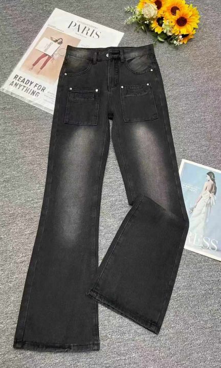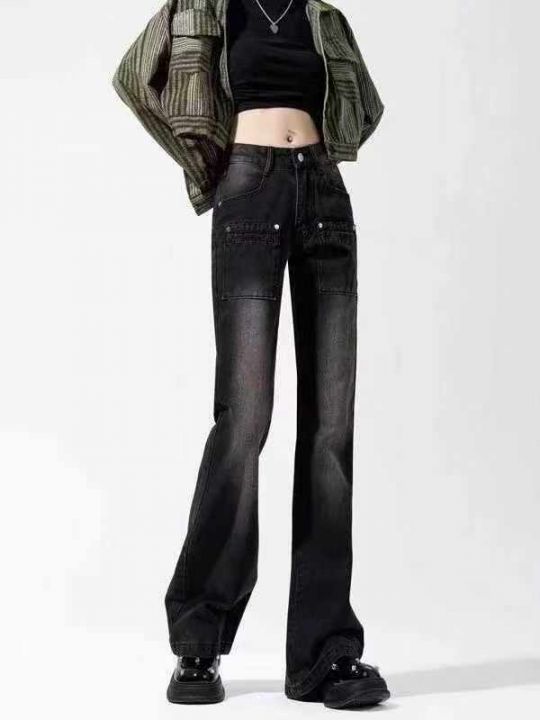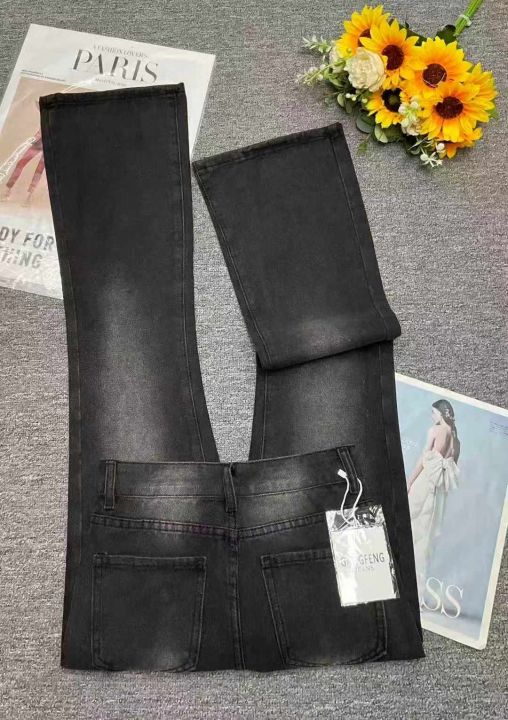 秋季新品洗水棉复古网红爆款微喇叭直筒阔腿牛仔裤,独...