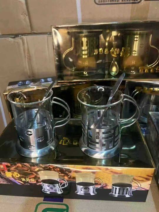 不锈钢玻璃杯咖啡杯200ml防摔耐热金属底座托套法压,原箱原件处理350套左右[烟花][發][庆祝]