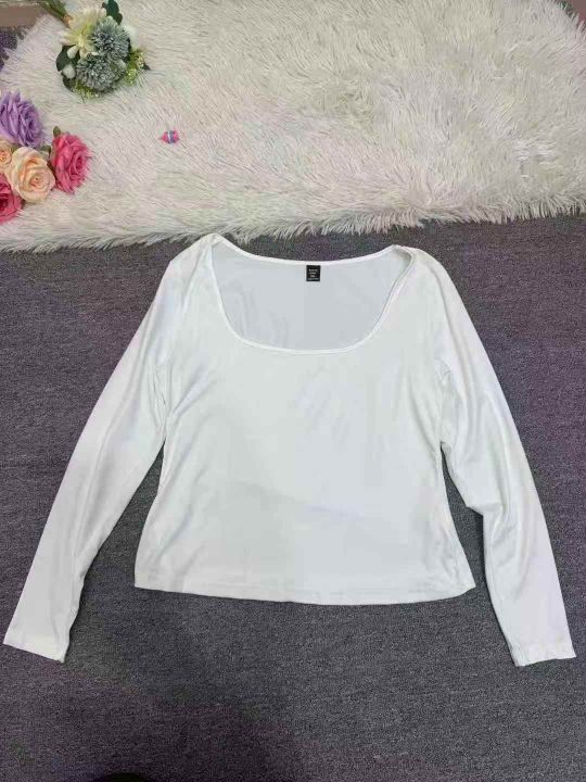 5851件,女早秋季纯色百搭U领长袖T恤上衣女弹力修身高...