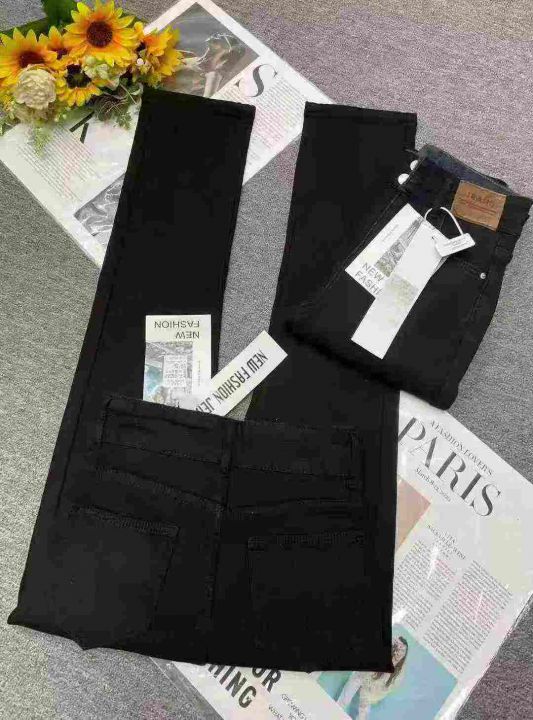 秋冬新款黑色宽松百搭排扣设计款洗水棉牛仔直筒烟管裤,独立包装带吊牌,码...