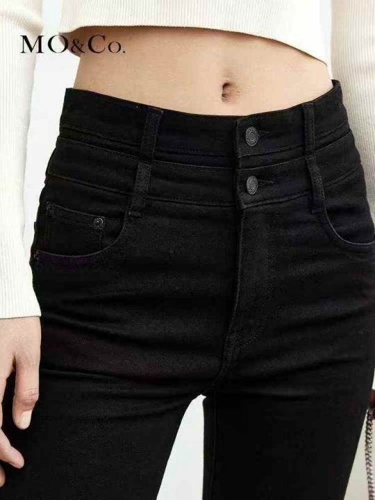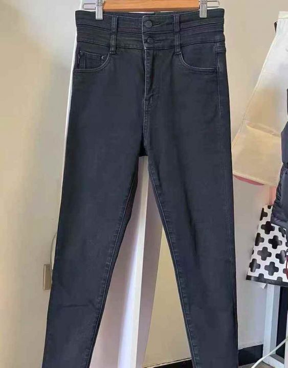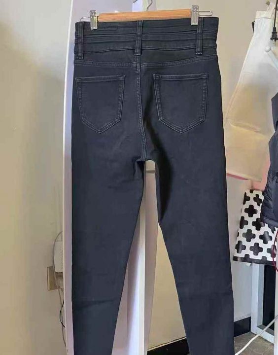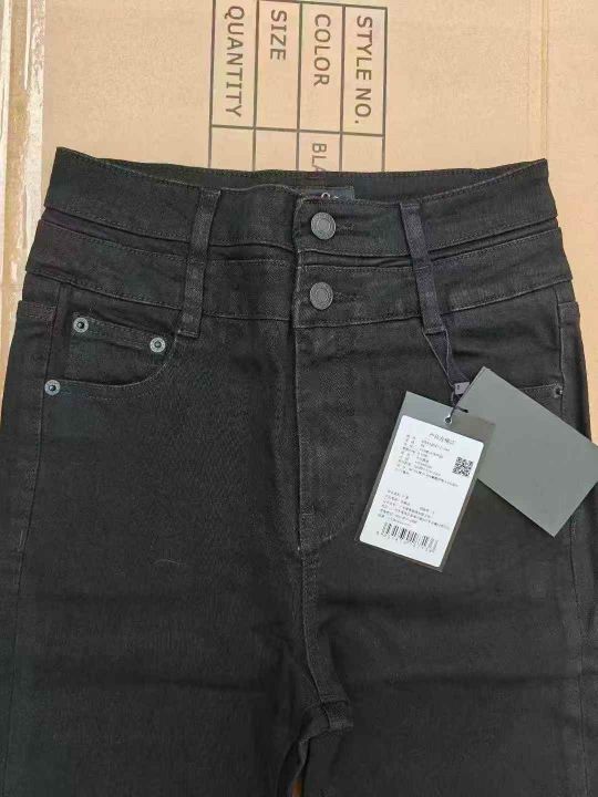 YKK拉链 高弹力牛仔裤 174件纯黑色高腰提档窄版直筒牛仔裤女款秋季修身显瘦...