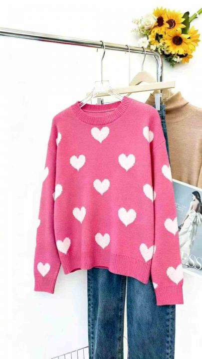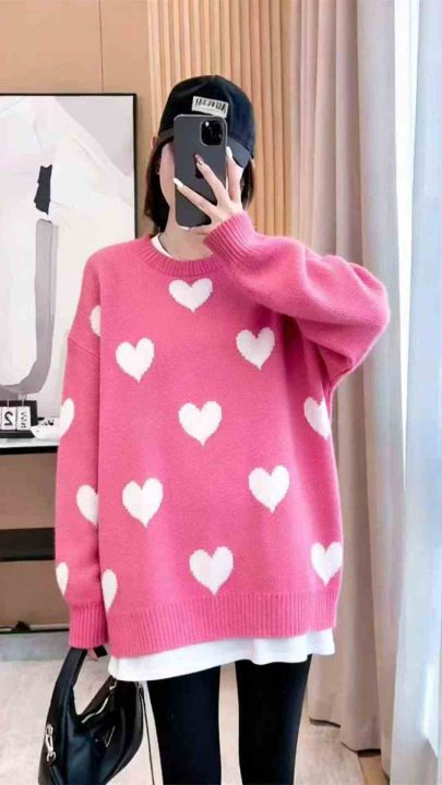 秋冬新款宽松爱心提花中长款遮屁慵懒风北极绒套头毛衣,独立包装,码数S--2XL码,面料软糯厚实,430件,全清8.9元超低价秒杀!分货加一。 货号:1323