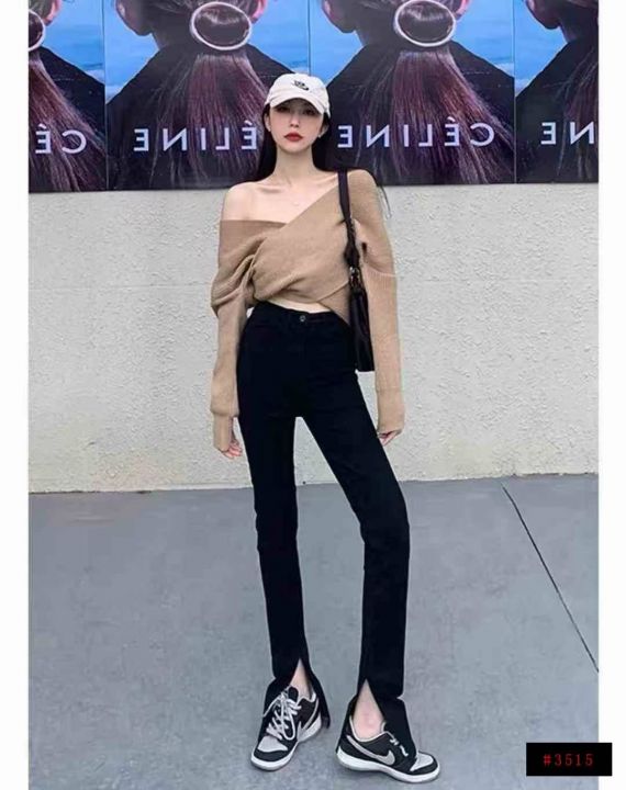 YKK拉链 高弹力牛仔裤 174件纯黑色高腰提档窄版直筒牛...