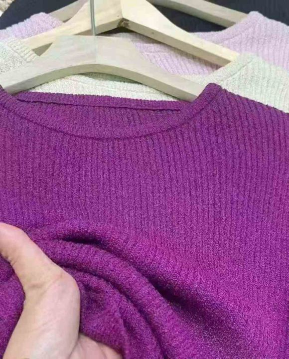 圆领坑条针织衫,单款多色,单穿打底都可,总数量 230 件左右,独立包装。 货号:1323