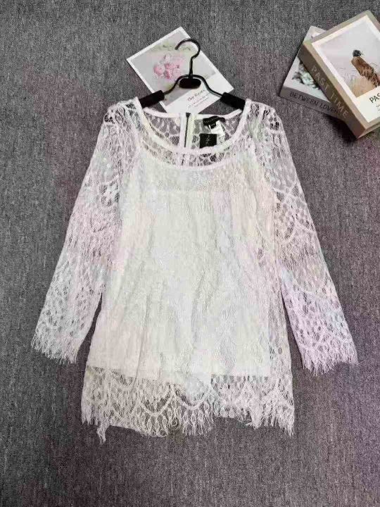 洋气高档网纱蕾丝上衣两件套,整款三色(黑色为主),品质好带吊牌,数量890件左右,码数s-3xl,独立包装,全清5.5,分货0.5。 货号:24862