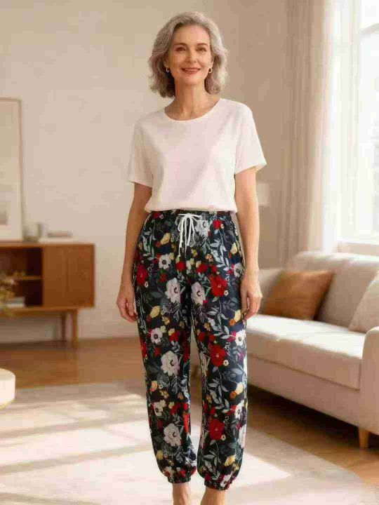 全清5.8 分货+0.5430件女装抽绳束脚印花裤,整款4...