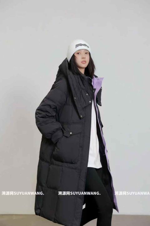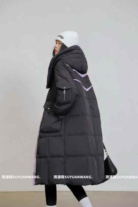 90绒拼色过膝羽绒服设计师款 黑色现货供应...