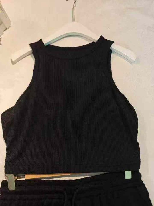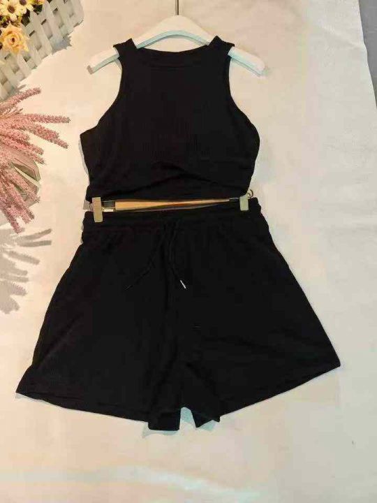 女装运动休闲 螺纹背心短裤 松紧裤腰带短裤套装 独立...
