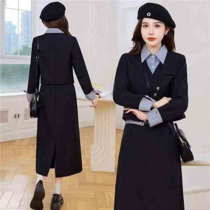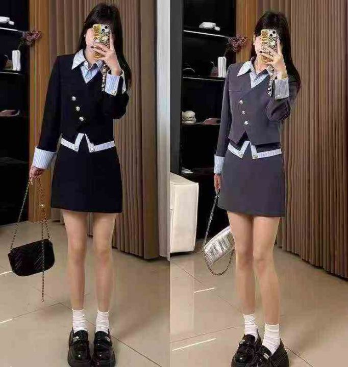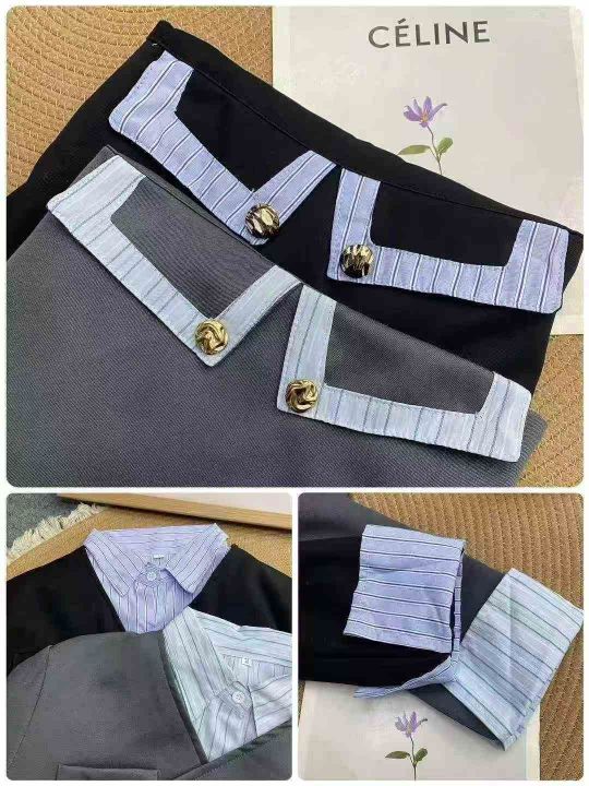 小香风撞色西装套裙141套16.8,假两件,撞色拼接,裙...