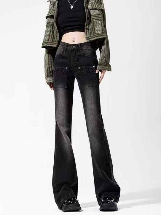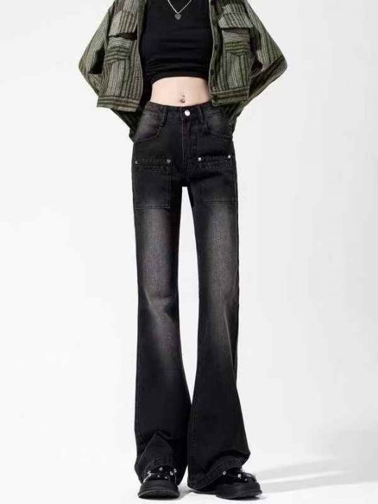 秋季新品洗水棉复古网红爆款微喇叭直筒阔腿牛仔裤,独...