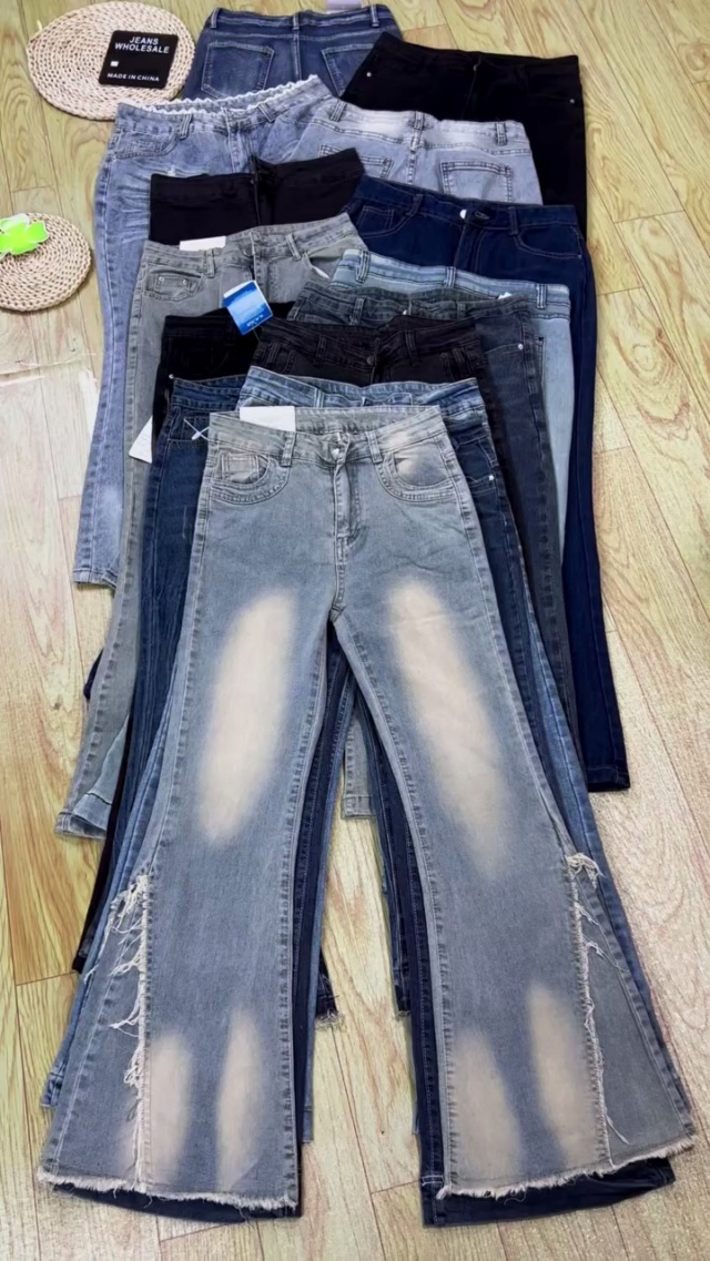 #Lady jeans wholesale外单高腰女士小整杂款微嗽叭牛仔裤,四面高弹修身显...