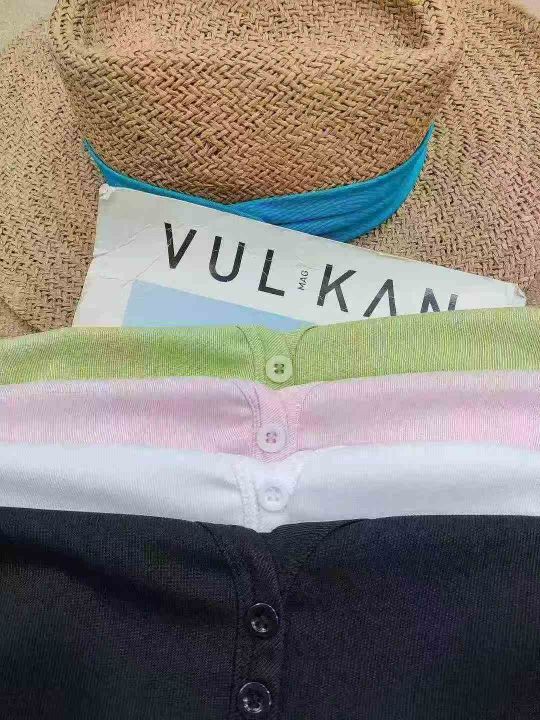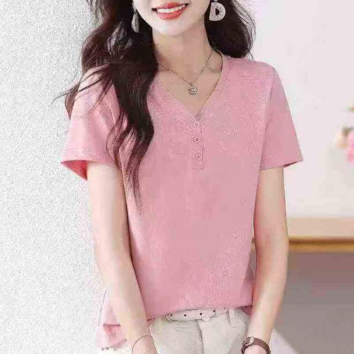 [月亮]:5.8清1500件[月亮]:夏季新款纽扣V领休闲短袖...