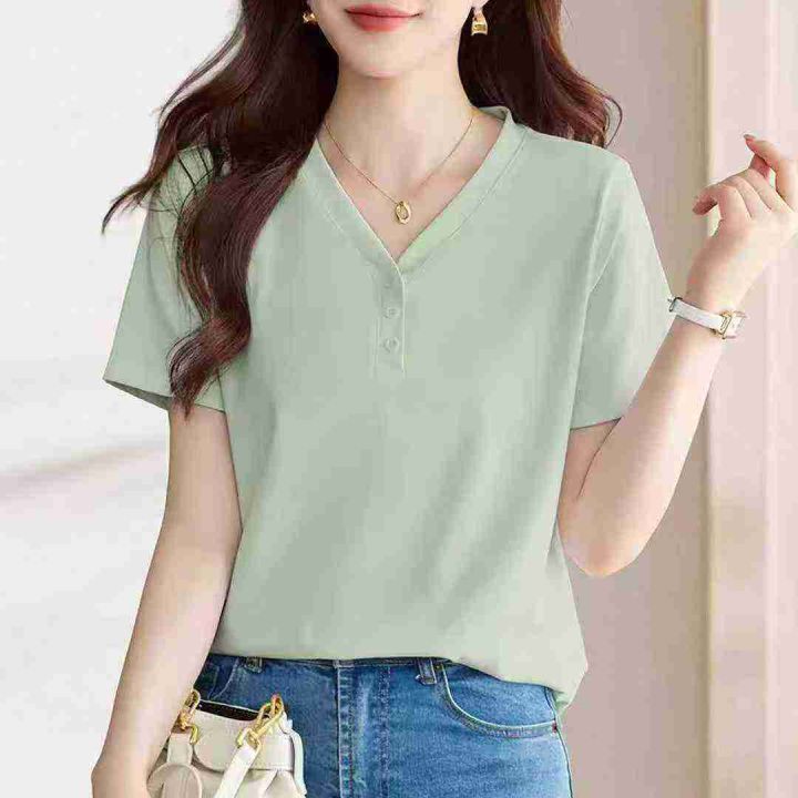 [月亮]:5.8清1500件[月亮]:夏季新款纽扣V领休闲短袖...