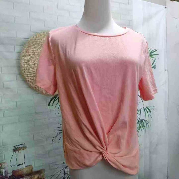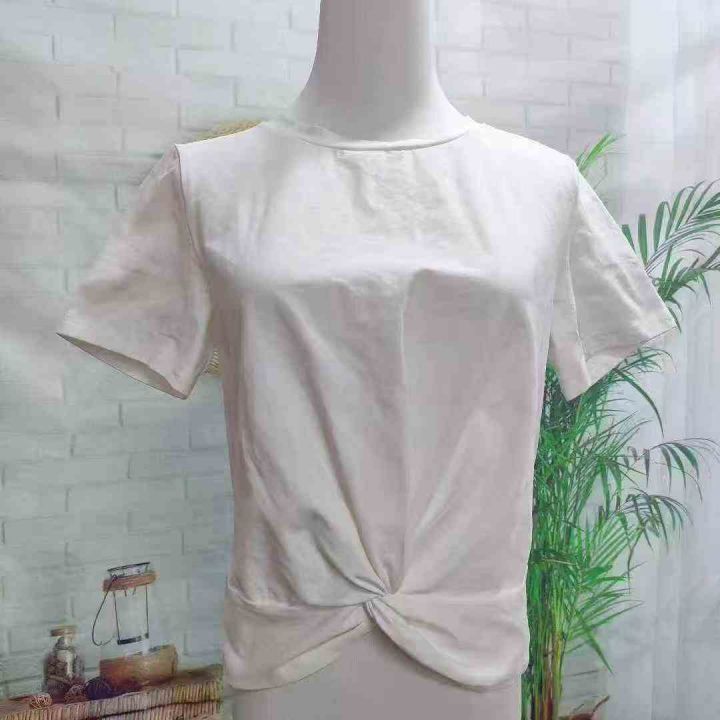 4.8元秒杀[庆祝][庆祝] 女装春夏舒适扭结设计感圆领短袖T恤,独立包装吊牌,码数s-2xl,数量110件左右$