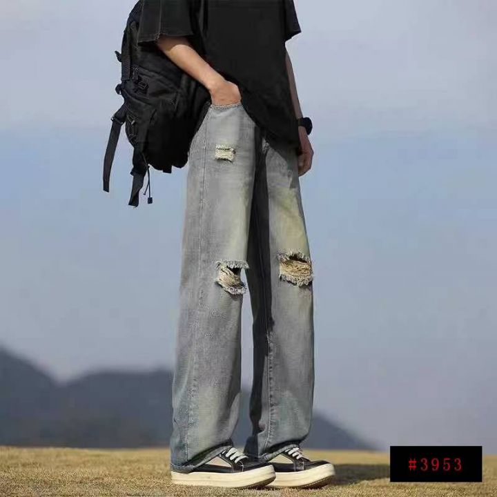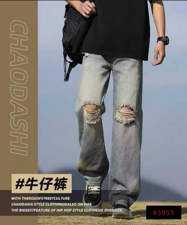 美式街头水洗破洞男士宽松阔腿牛仔裤,单款单色,独立...