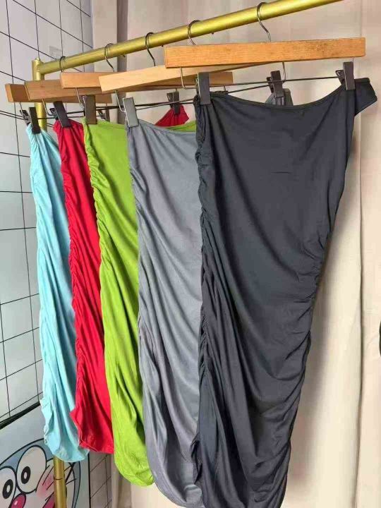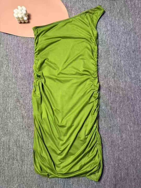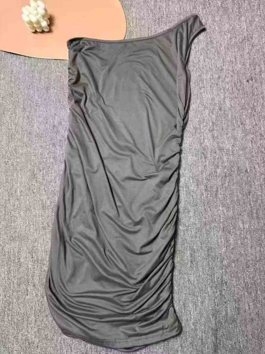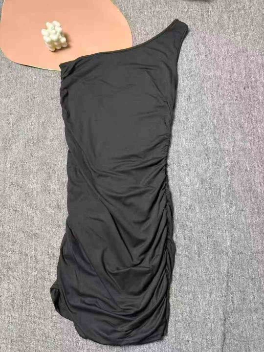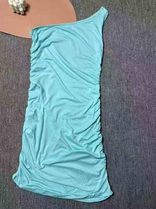 8.8清658件时髦名媛大牌褶皱设计感/斜肩无袖连衣裙包臀裙短裙女春夏 码数M-2XL 独立包装
