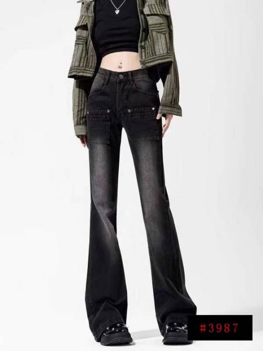 秋季新品洗水棉复古网红爆款微喇叭直筒阔腿牛仔裤,独...