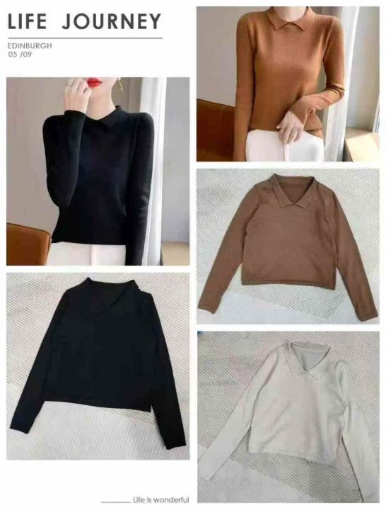 7.9清248件女装翻领纯色百搭秋冬新款打底毛衣针织衫,...
