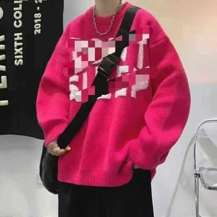 81件品牌圆领毛衣,秋冬季潮牌植绒字母针织衫ins韩系情侣宽松套头毛线衣 实体店品质独立包装有吊牌,大板厚实高克重S M L码