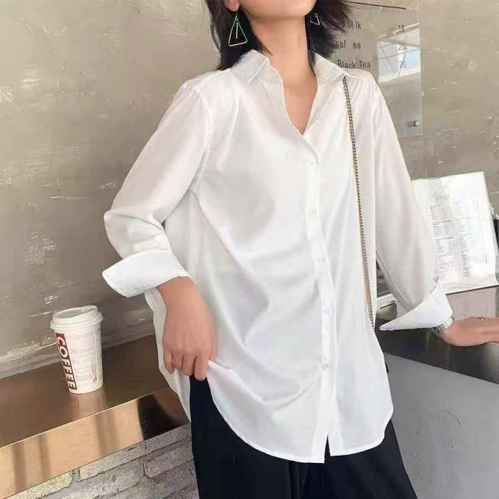 气质轻奢法式垂感抗皱慵懒风休闲宽松男女款长袖衬衫上衣 独立包装 码数-2XL...