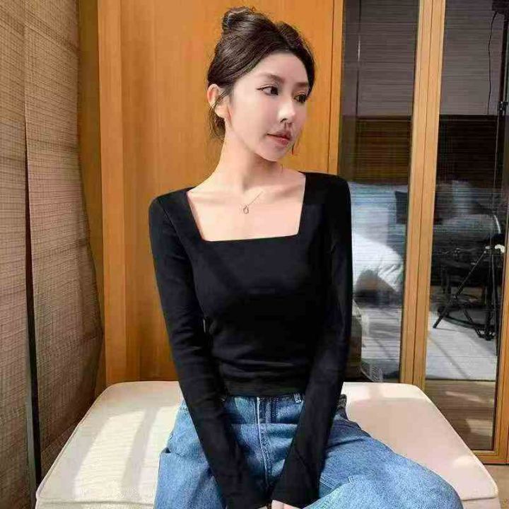 韩版小众长袖甜辣妹上衣内搭外穿ins打底衫,独立包装...