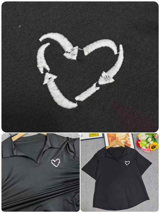 天猫仓回收156件韩系刺绣爱心靓妹短袖上衣,码数S-2XL。面料有弹力,正肩版型显瘦百搭,全部独立包装。。 货号:1303