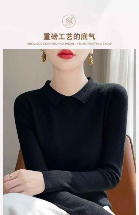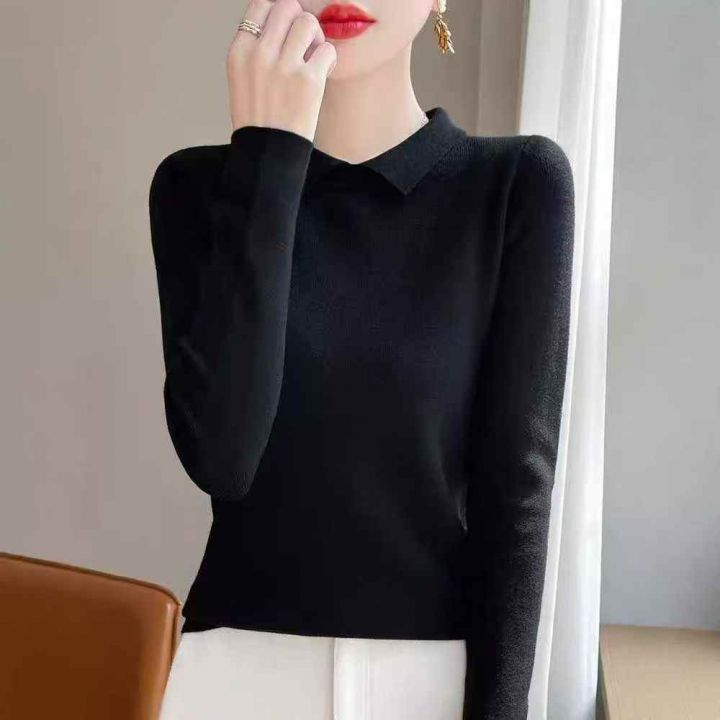 7.9清248件女装翻领纯色百搭秋冬新款打底毛衣针织衫,...