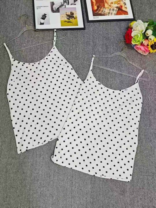 电商仓回收240件夏季气质靓妹波点背心,码数s-l。宽松版型,肩带可以调节,面料柔软有垂感,全部独立包装。。 货号:1303