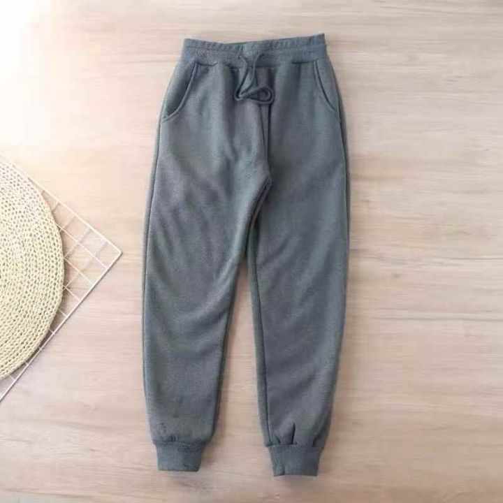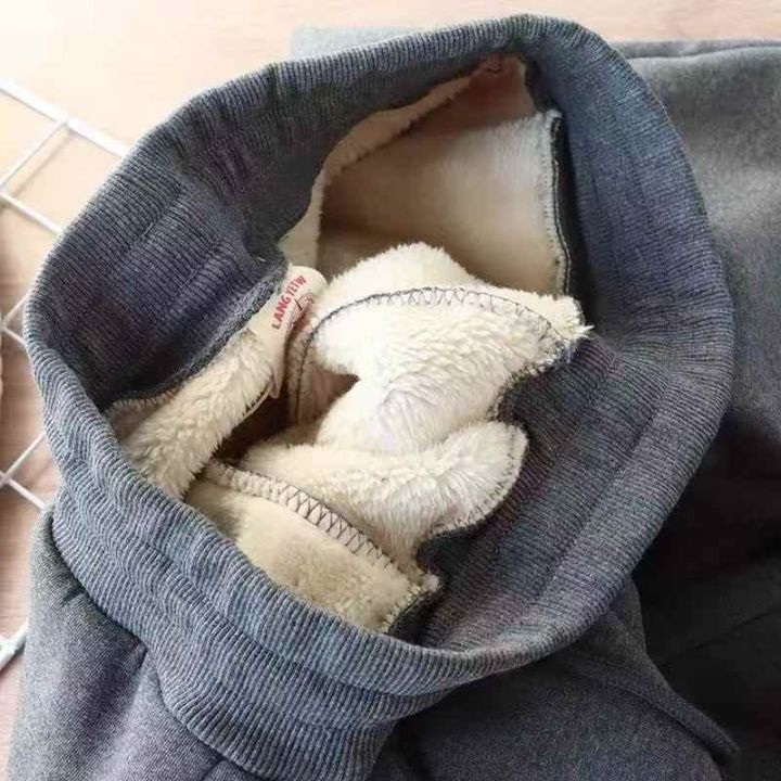 100条厚实保暖冬季羊羔绒卫裤加绒加厚运动休闲束脚长...