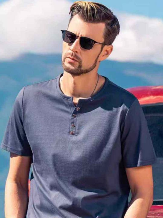 3.5清电商仓回收850件男士纯棉简约舒适大气亨利圆领短袖T恤,码数M-3XL。面...