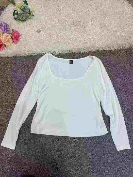 5851件,女早秋季纯色百搭U领长袖T恤上衣女弹力修身高腰显瘦打底衫,一包3件3个色包装,码数XL-4XL,全清3.8元,分货➕1