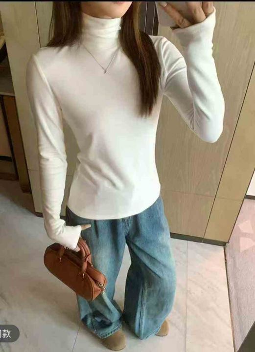 2980件韩版靓妹修身显瘦百搭半高领德绒打底衫,高弹力...