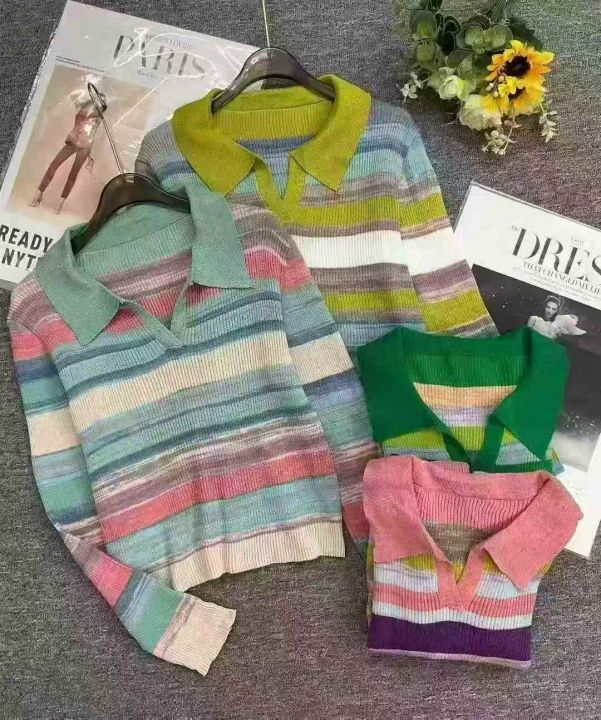 秋季新款POLO领撞色彩虹条纹微胖MM设计感时尚宽松长袖套头毛衣羊毛衫,独立包装,均码宽松款面料软糯Q弹,1800件,全清8.9元超低价秒杀!分货加一!。 货号:1303