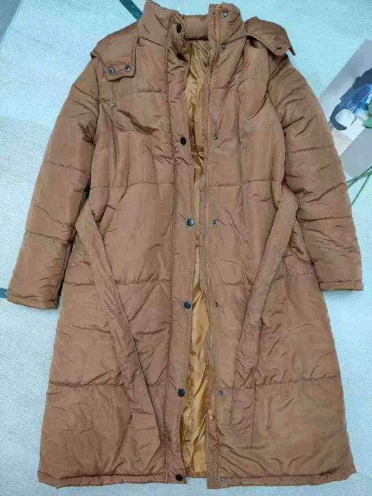 23.8清,230件女装中长款连帽收腰加厚面包棉服外套,S-XXL码,独立包装。 货号:1323