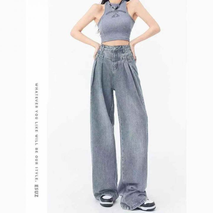 夏季薄款复古高街阔腿牛仔裤女ins垂感高腰,单款单色,独立包装带吊牌,码...