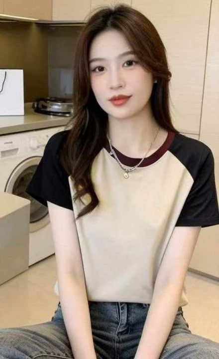夏季新款圆领撞色插肩韩版基础百搭显瘦棉T桖,码数M--3XL码,工厂新货10件...